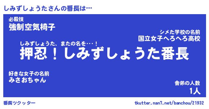 | ヒーロー風カッコイイあだ名 | 『スーパーシミズショウタ』 |