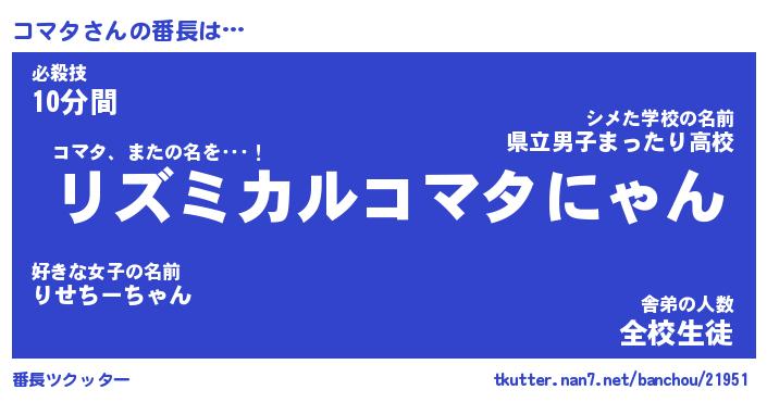 | ファンタジー風あだ名 | 『コマフェル』『エターナルコマター』 |