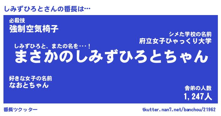 | ヒーロー風カッコイイあだ名 | 『スーパーシミズヒロト』『銀牙騎士シミ』 |