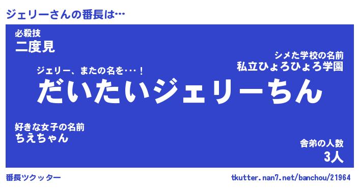 | 男性向けラノベタイトル風あだ名 | 『ジェリーの憂鬱』 |