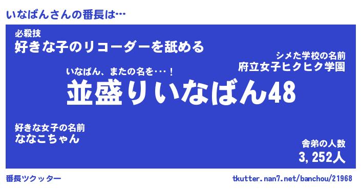| 肩書あだ名 | 『いなばん店長』『いなばん国家主席』 |