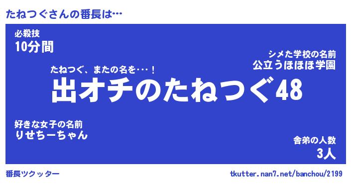 | 男性向けラノベタイトル風あだ名 | 『たねつぐの憂鬱』 |