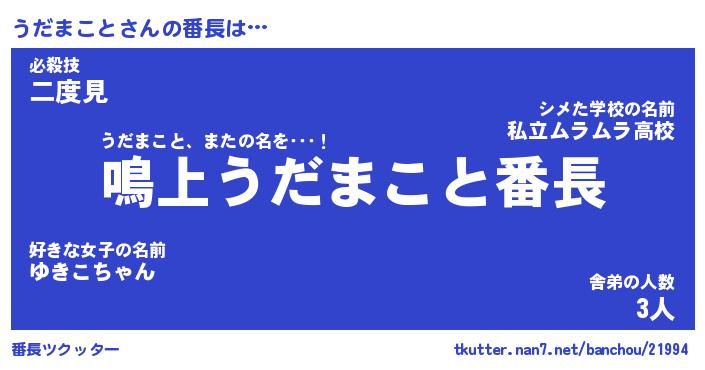 | ファンタジー風あだ名 | 『ウダフェル』『エターナルウダマコトー』 |