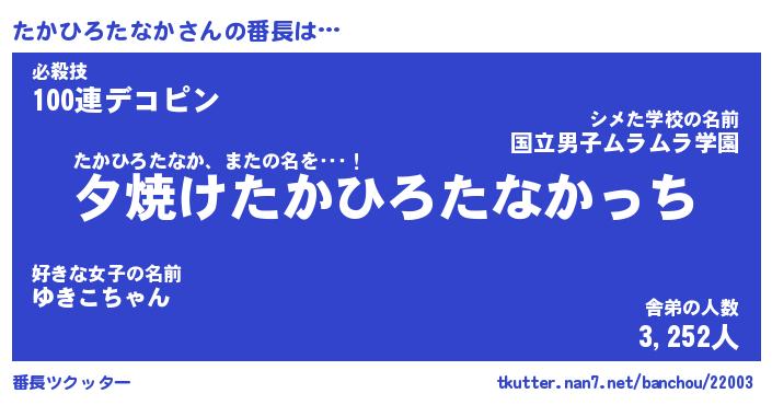| 伝説のあだ名 | 『封印されしスナイパーたかひろたなか』 |
