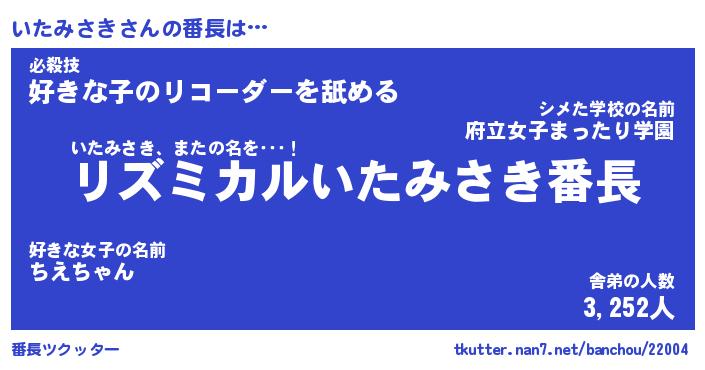 | ヘコむあだ名 | 『いたもー』『なまこ酢』『いたっ子』 |