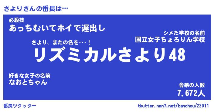 | ポケモン風あだ名 | 『サヨチュウ』『サヨリダネ』 |