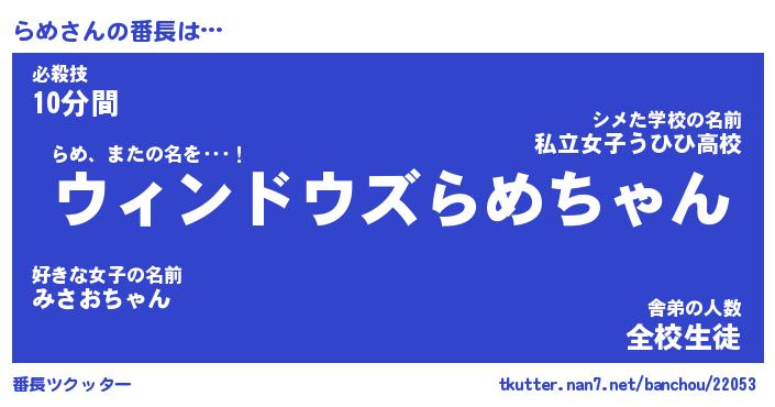 | ヘコむあだ名 | 『らめにー』『牛乳』『らめっぺ』 |