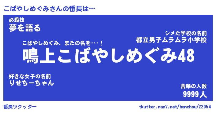 | 2回繰り返すあだ名 | 『こばこば』『ここばば』『なあなあ』 |