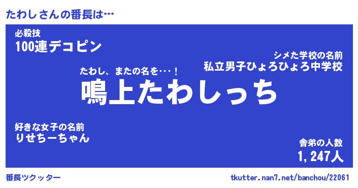 | ピコ太郎風あだ名 | 『タコ一郎』『ピタ十郎』『タワ八郎』 |
