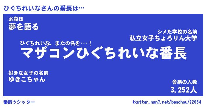 | ヘコむあだ名 | 『ひぐにー』『つくし』『ひぐっ子』 |