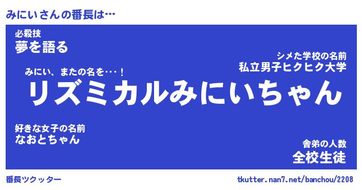 | 意味不明あだ名 | 『ペロリンみにい』『みにいフォーエバー』 |