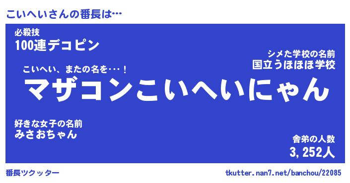 | 意味不明あだ名 | 『ペロリンこいへい』『永久保存こいへい』 |