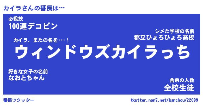 | ヘコむあだ名 | 『カイにー』『つくし』『カイっちょ』 |