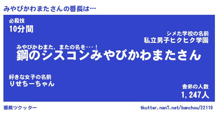 | 伝説のあだ名 | 『封印されし竜騎士みやびかわまた』 |
