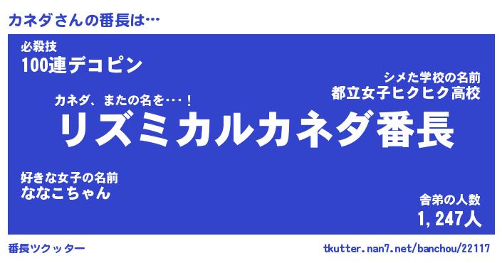 | ピコ太郎風あだ名 | 『カコ十郎』『ピカ四郎』『カネ一郎』 |
