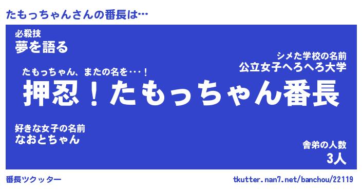 | 伝説のあだ名 | 『封印されしスナイパーたもっちゃん』 |