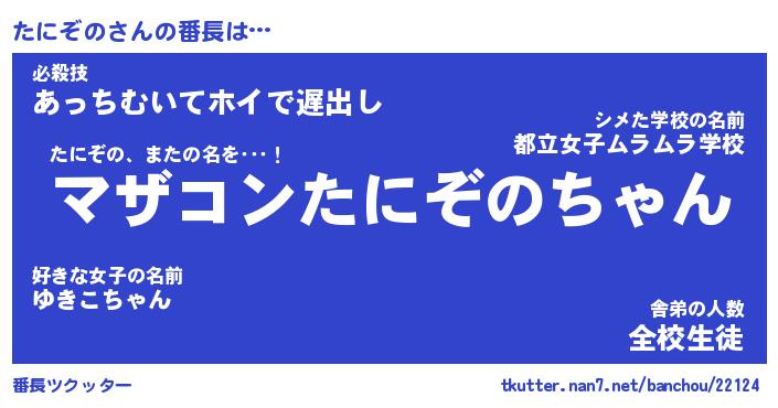 | 2回繰り返すあだ名 | 『たにたに』『たたにに』『うねうね』 |