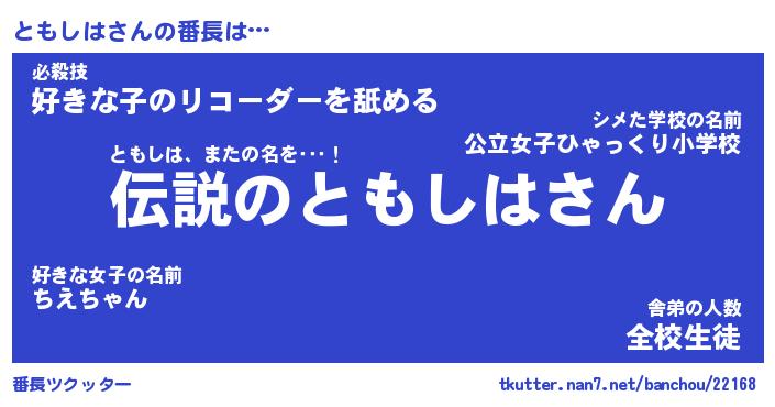 | 肩書あだ名 | 『ともしは社長』『ともしは大統領』 |