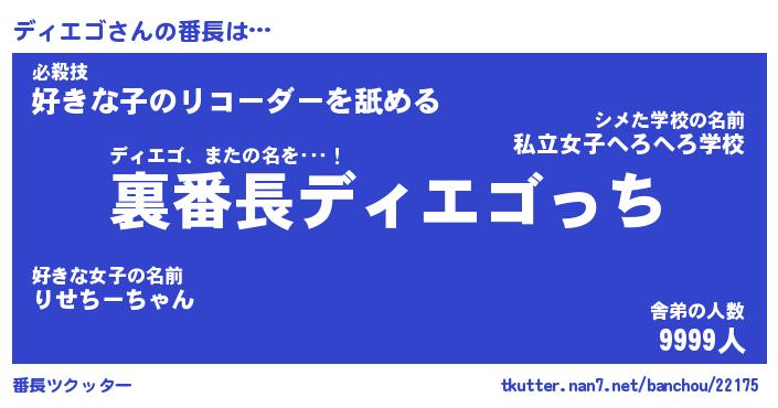 | 意味不明あだ名 | 『ペロリンディエゴ』『永久保存ディエゴ』 |