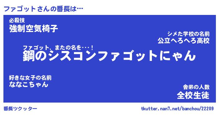 | 伝説のあだ名 | 『封印されしスナイパーファゴット』 |