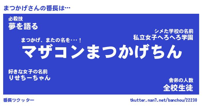 | 意味不明あだ名 | 『ペロリンまつかげ』『永久保存まつかげ』 |