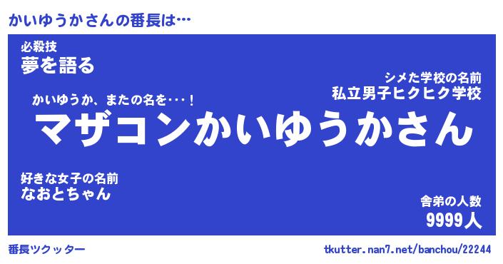 | 肩書あだ名 | 『かいゆうか店長』『かいゆうか総理大臣』 |