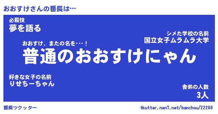 | 肩書あだ名 | 『おおすけ社長』『おおすけ総理大臣』 |