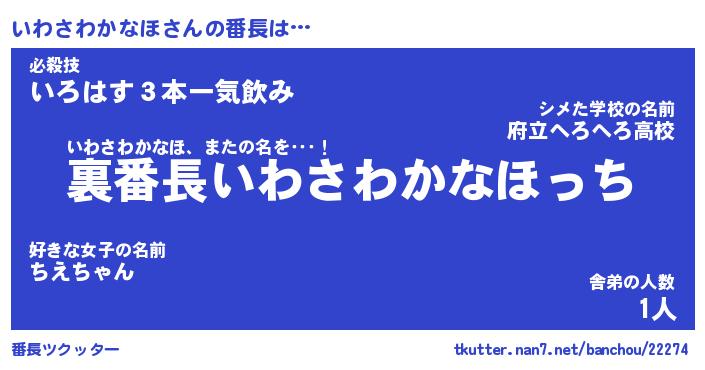 | ヘコむあだ名 | 『いわっふぃ~』『なまこ酢』 |