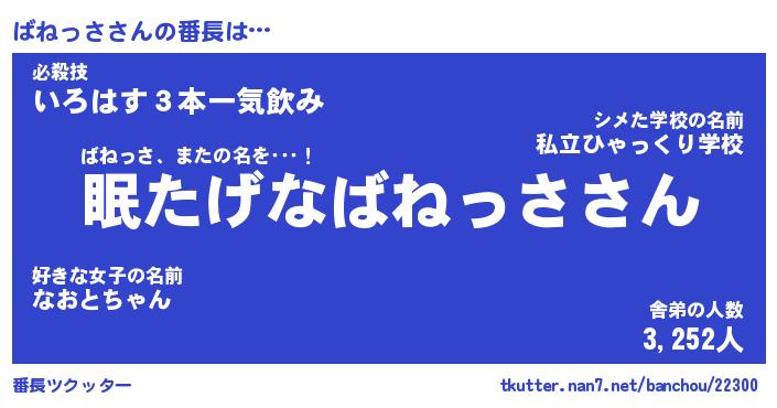 | 肩書あだ名 | 『ばねっさ社長』『ばねっさ総理大臣』 |