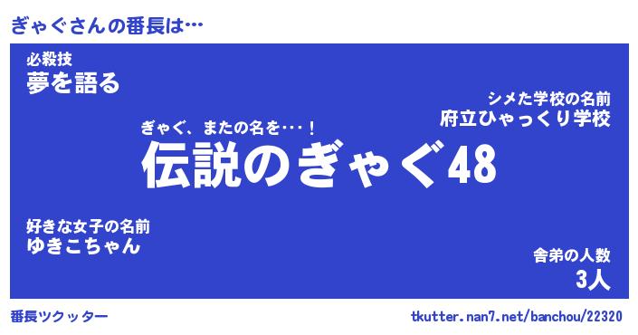 | 伝説のあだ名 | 『伝説のスナイパーぎゃぐ』 |
