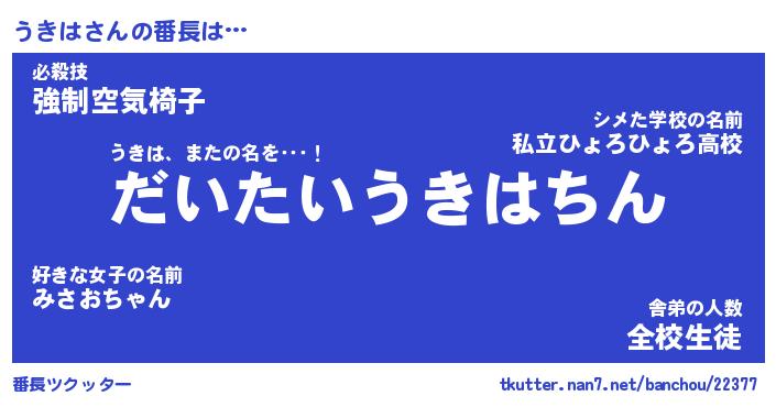 | ヒーロー風カッコイイあだ名 | 『スーパーウキハ』『ウルトラうきはマン』 |