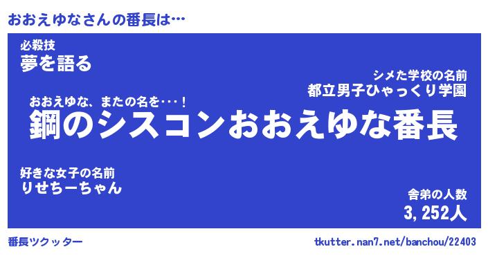 | ファンタジー風あだ名 | 『オオフェル』『エターナルオオエユナー』 |