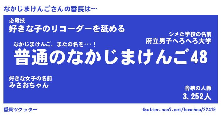 | 男性向けラノベタイトル風あだ名 | 『なかじまけんごの憂鬱』 |