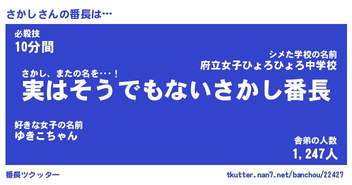 | ヒーロー風カッコイイあだ名 | 『スーパーサカシ』『ウルトラさかしマン』 |