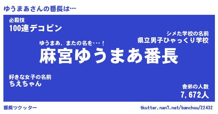 | 意味不明あだ名 | 『ペロリンゆうまあ』『永久保存ゆうまあ』 |
