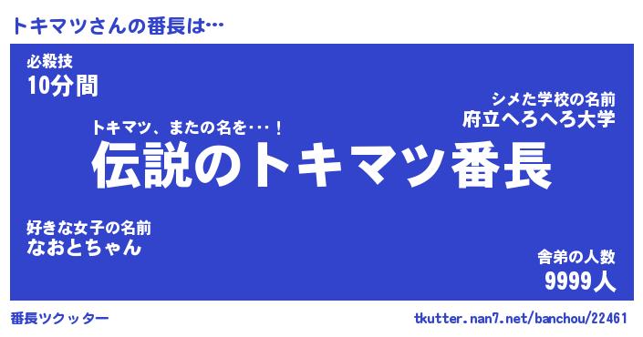 | 意味不明あだ名 | 『ペロリントキマツ』『永久保存トキマツ』 |
