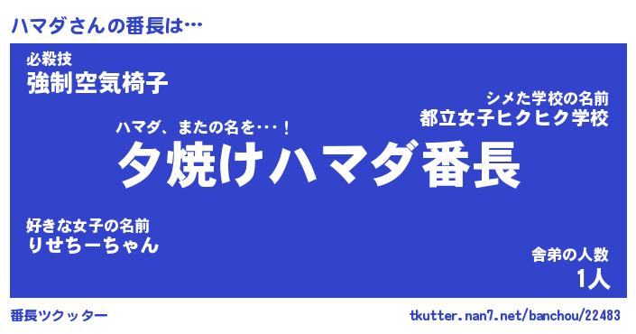 | ポケモン風あだ名 | 『ハマチュウ』『ハマダダネ』 |