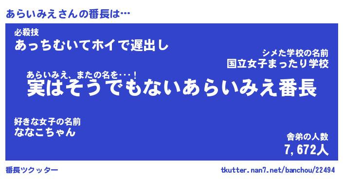 | 肩書あだ名 | 『あらいみえ社長令嬢』『あらいみえ班長』 |