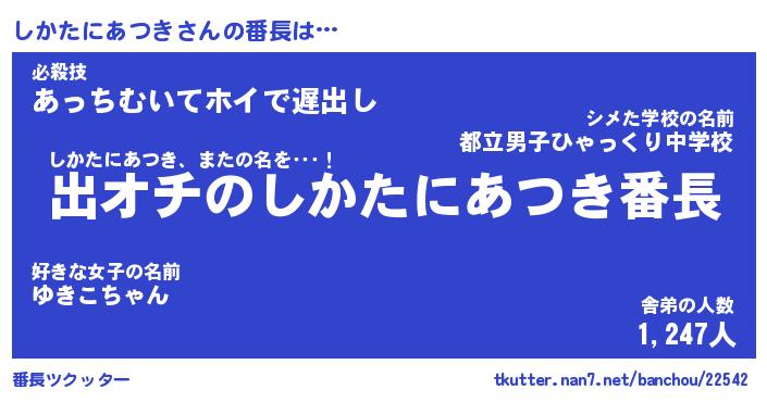 | 男性向けラノベタイトル風あだ名 | 『しかたにあつきの憂鬱』 |