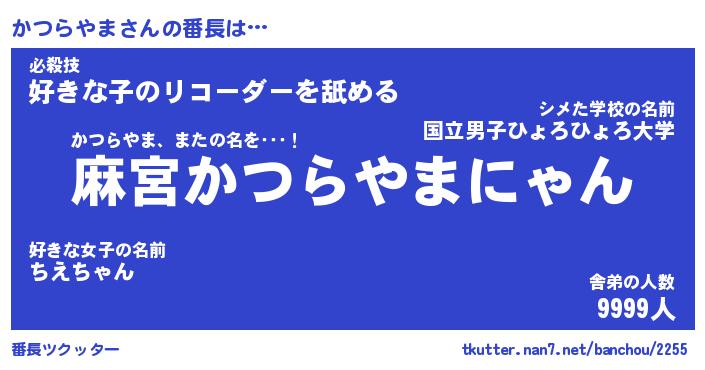 | ヘコむあだ名 | 『かつにゅー』『酢こんぶ』『かつを』 |