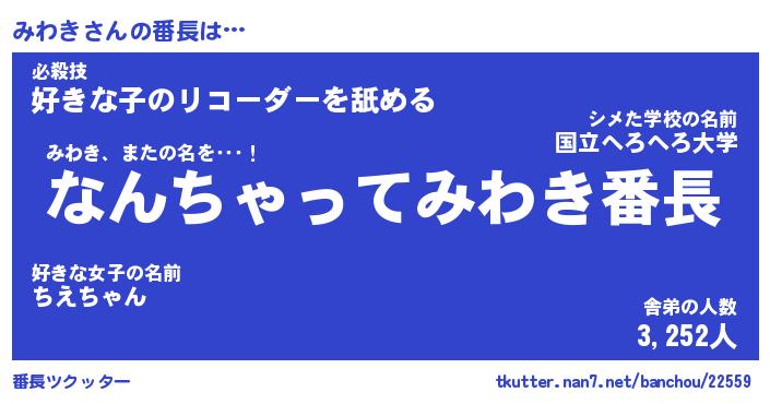 | 意味不明あだ名 | 『ペロリンみわき』『みわきフォーエバー』 |