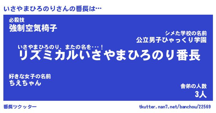 | 男性向けラノベタイトル風あだ名 | 『いさやまひろのりの憂鬱』 |