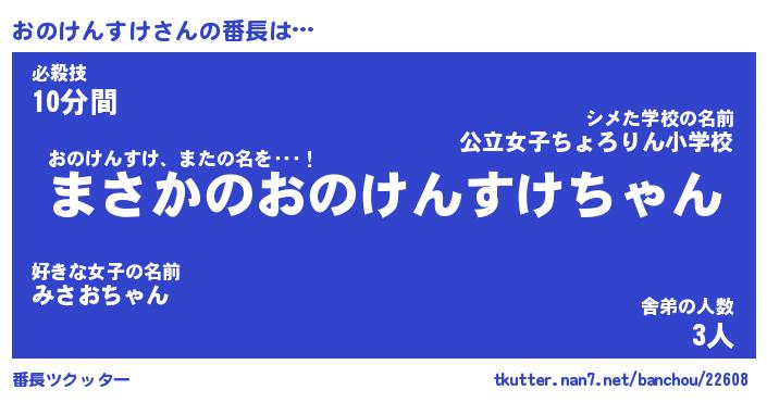 | 男性向けラノベタイトル風あだ名 | 『おのけんすけの憂鬱』 |