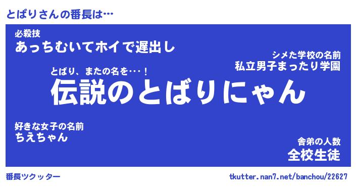 | ポケモン風あだ名 | 『トバチュウ』『トバリダネ』 |