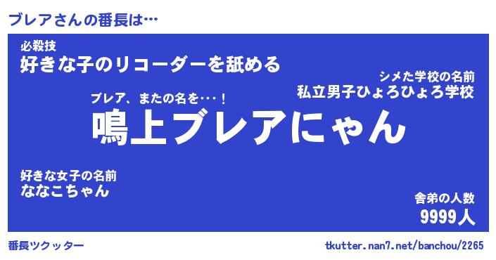 | ピコ太郎風あだ名 | 『ブコ四郎』『ピブ五郎』『ブレ六郎』 |