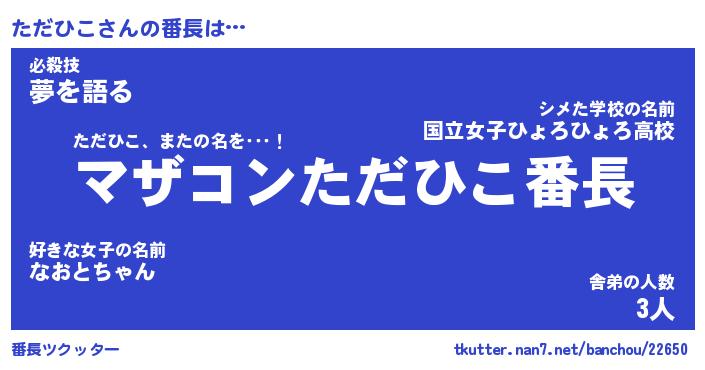 | ヘコむあだ名 | 『ただもー』『豆乳』『ただ太郎』 |