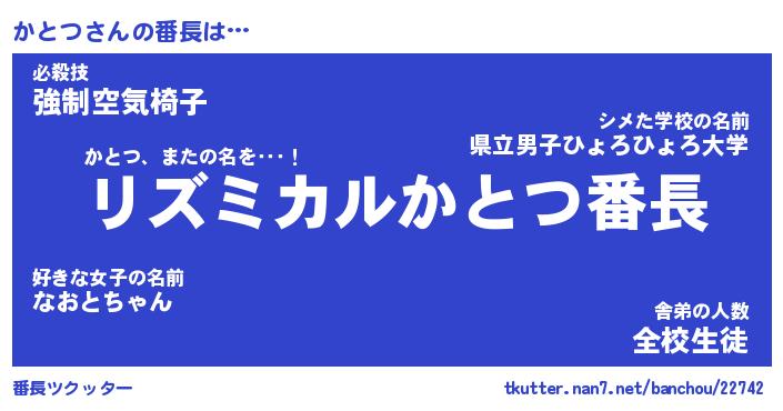 | 意味不明あだ名 | 『ペロリンかとつ』『かとつフォーエバー』 |