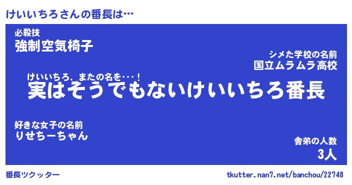 | 肩書あだ名 | 『けいいちろ社長』『けいいちろ大統領』 |