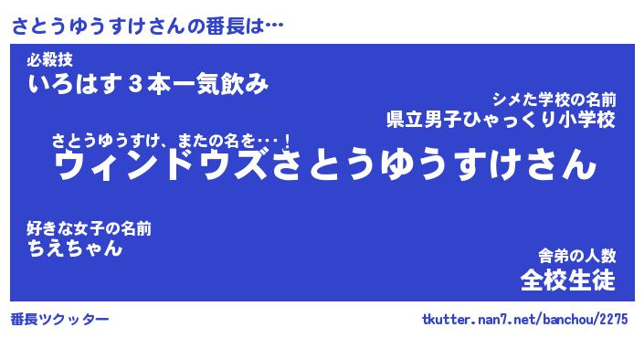 | 意味不明あだ名 | 『ペロリンさとうゆうすけ』 |