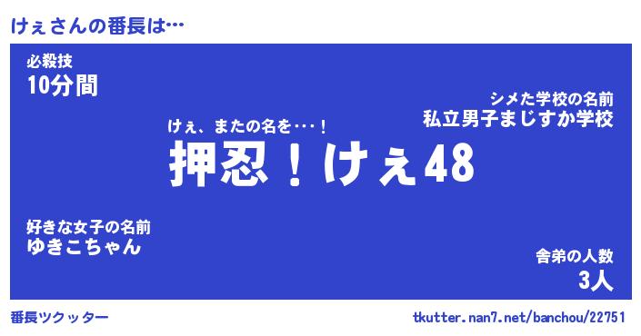 | 肩書あだ名 | 『けぇCEO』『けぇ大統領』『けぇ班長』 |
